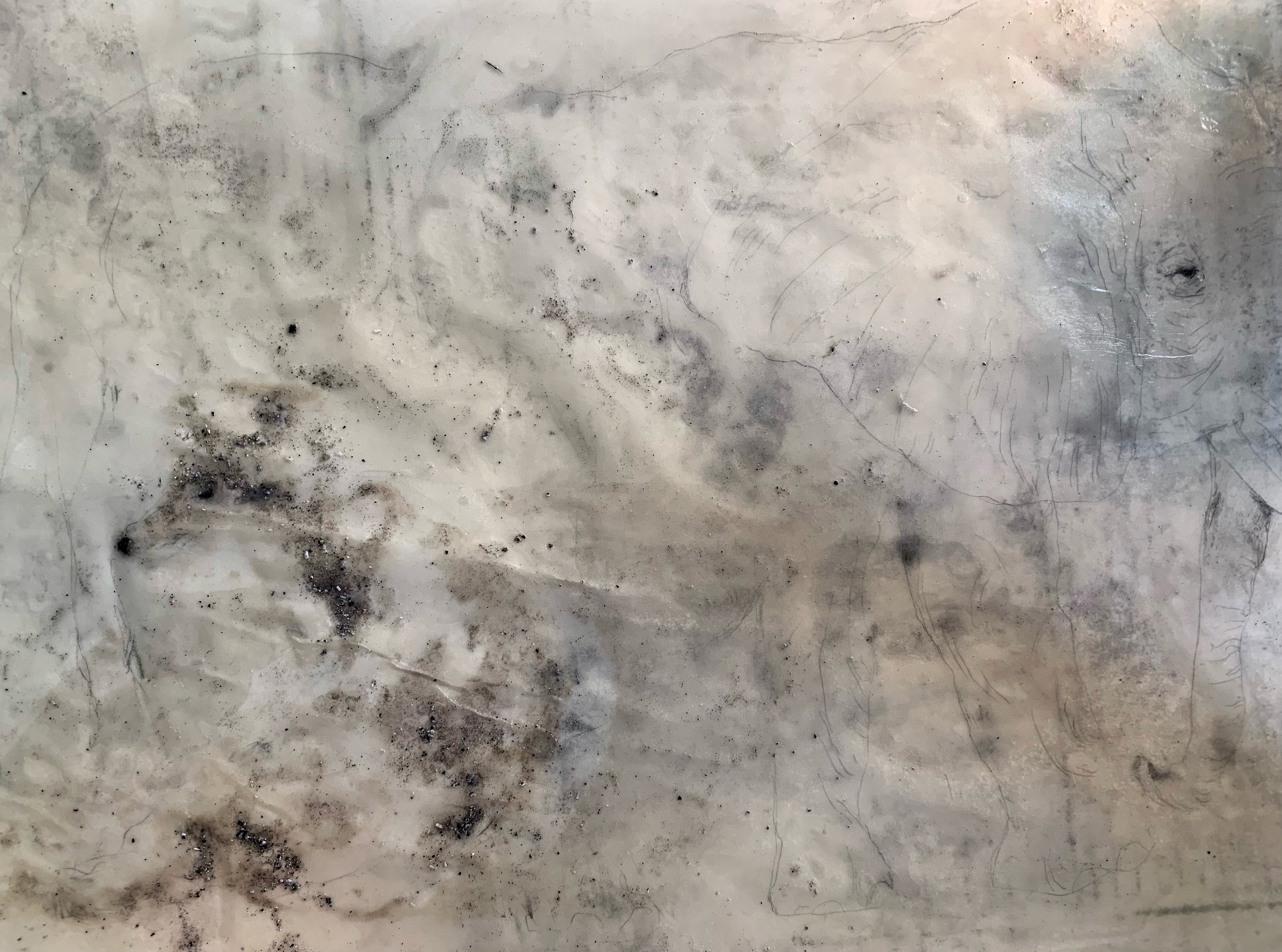 Animal mítico, 2025. Cinzas e grafite s/papel pólen. 29X42cm