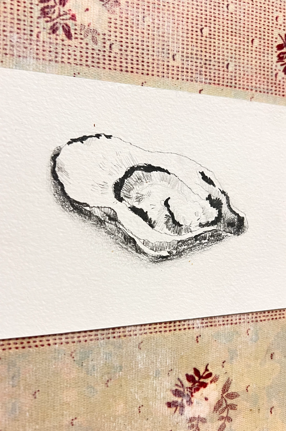 The original graphic patterns of wallpapers used in domestic interior decoration in the United States in the 19th century enter into dialogue with a new layer of contemporaneity and urgency: a report published on the G1 news portal on July 7, 2025 revealed alarming levels of arsenic in oysters collected along the Brazilian coast, raising alerts about toxic pollution and invisible food contamination.
