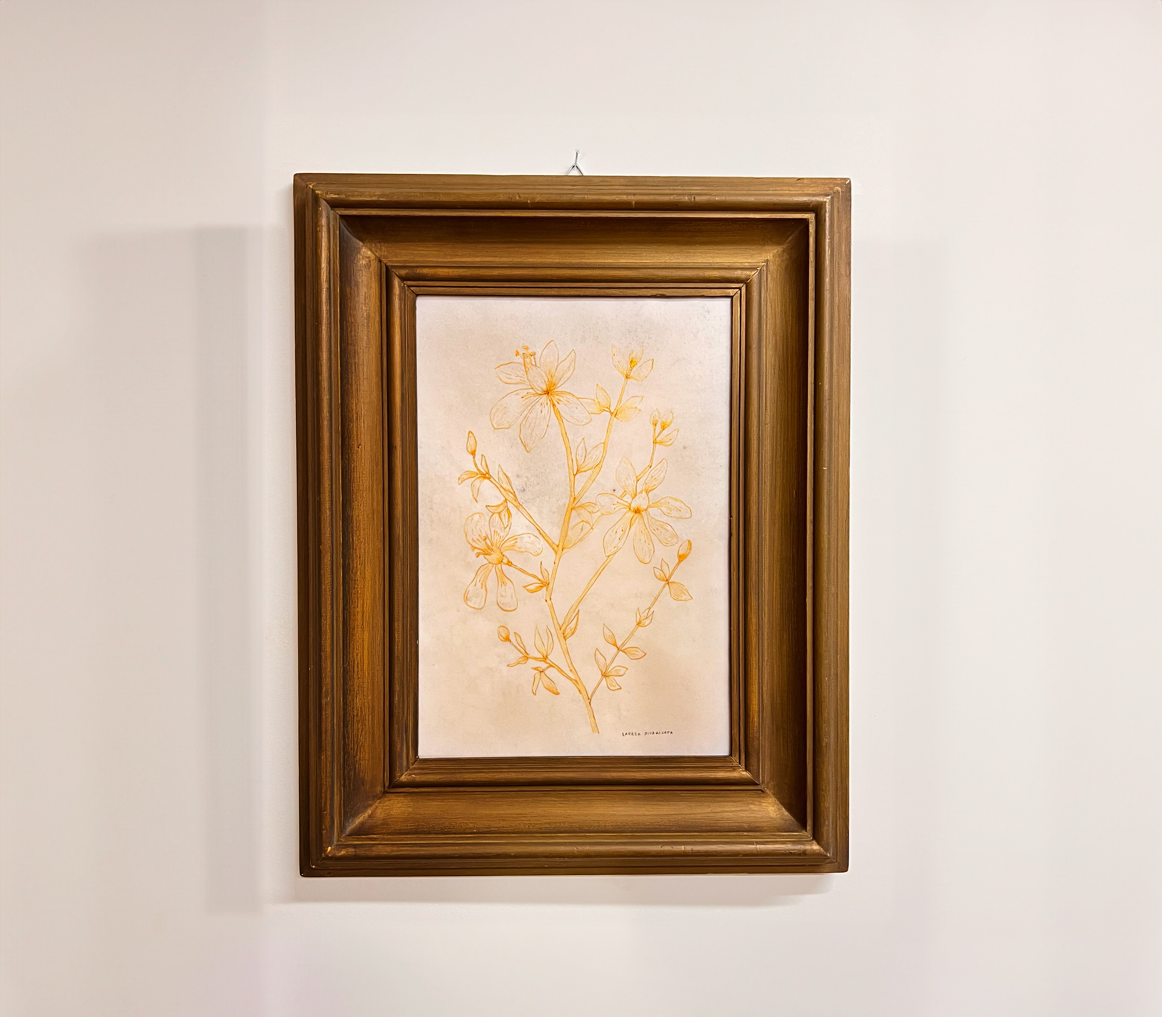 Botanical drawing of the plant scientifically named Larrea divaricata cav., known for its arsenic-neutralizing properties.