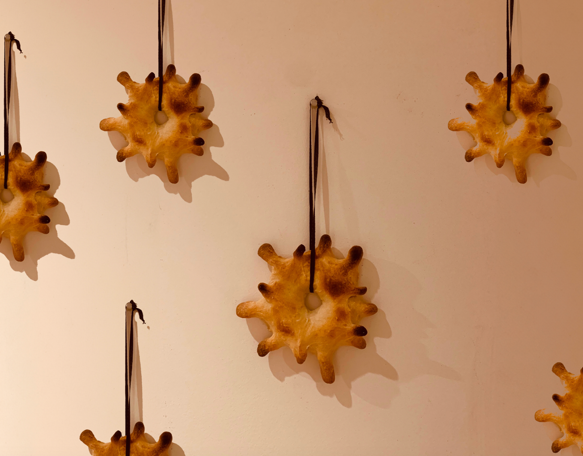 flour, water, ashes from the 252 burnt pages of the book "Tituba: Black Witch of Salem", 11cm each